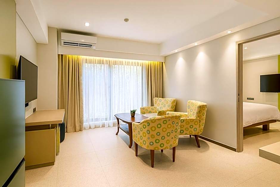 The air-conditioned suite has 1 bedroom and 1 bathroom with a shower and a bidet. The kitchenette is fitted with a refrigerator, an oven and a microwave. The suite features tiled floors, a seating area with a flat-screen TV, a mini-bar, a tea and coffee maker, as well as a dining area. The unit has 1 bed.